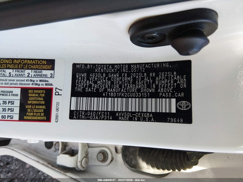 • 4T1BD1FK2CU033151