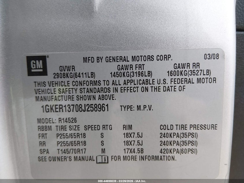 • 1GKER13708J258961
