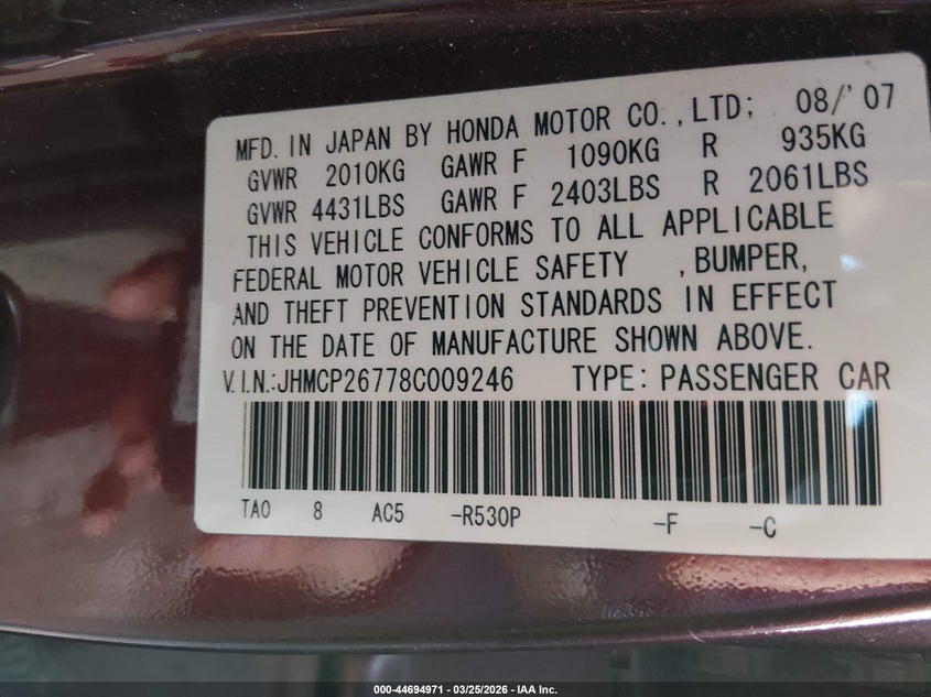 • JHMCP26778C009246