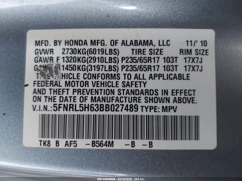 • 5FNRL5H63BB027489