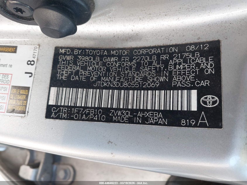 • JTDKN3DU8C5512069