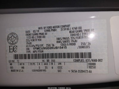 • 1FMCU9GD2KUB15415