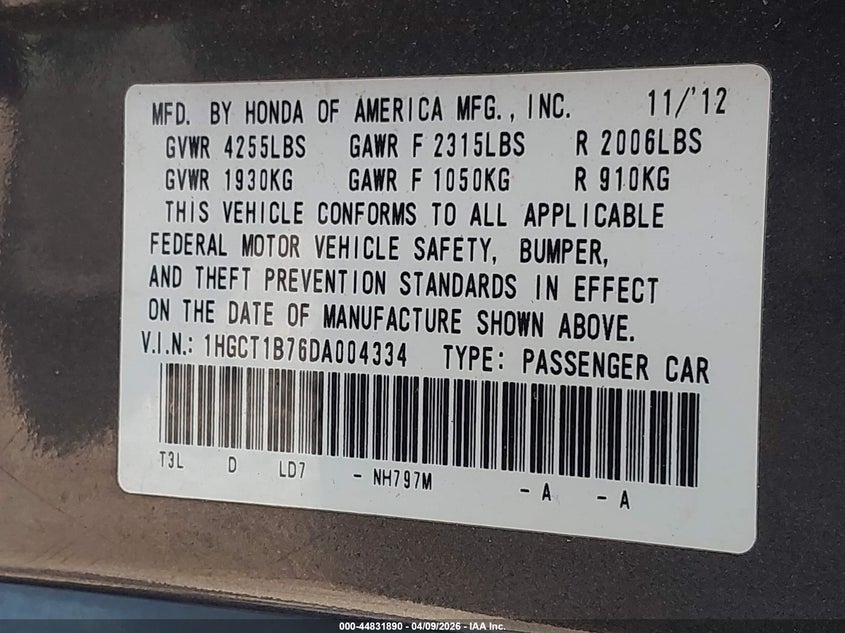• 1HGCT1B76DA004334