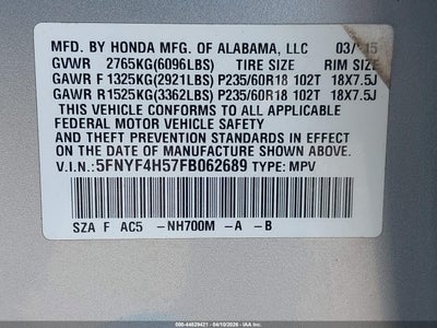 • 5FNYF4H57FB062689