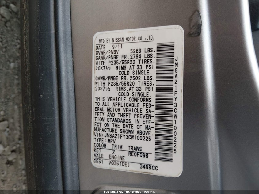 • JN8AZ1FY3CW100225