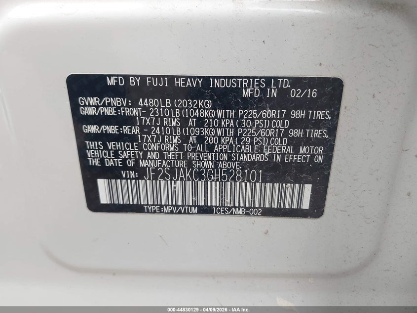 • JF2SJAKC3GH528101