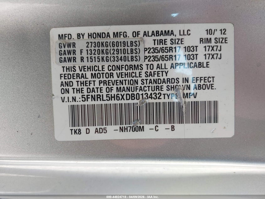 • 5FNRL5H6XDB013432