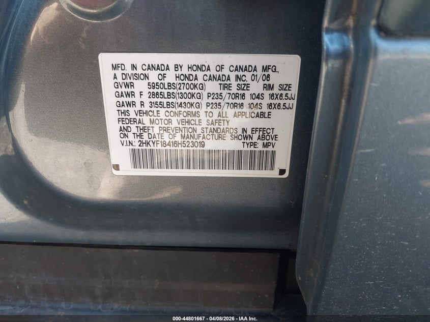 • 2HKYF18416H523019