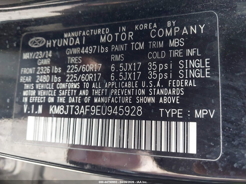 • KM8JT3AF9EU945928