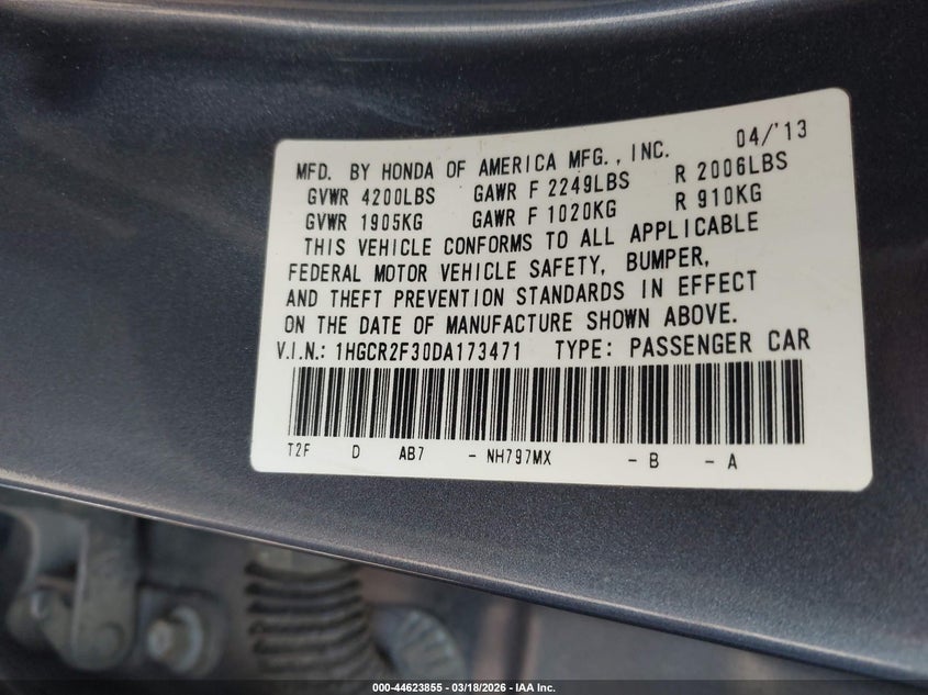 • 1HGCR2F30DA173471