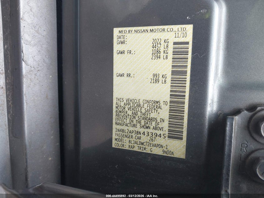 • 1N4BL2AP3BN433945