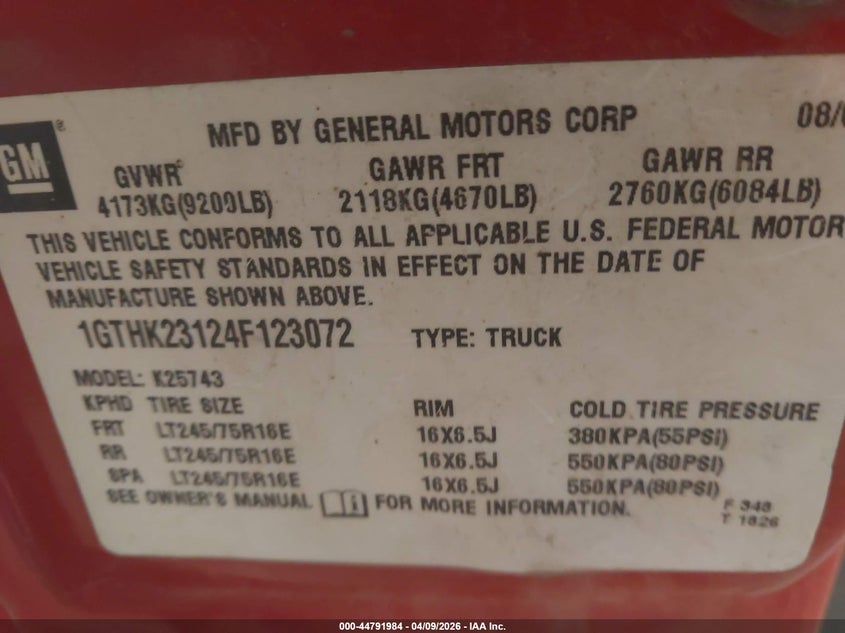 • 1GTHK23124F123072