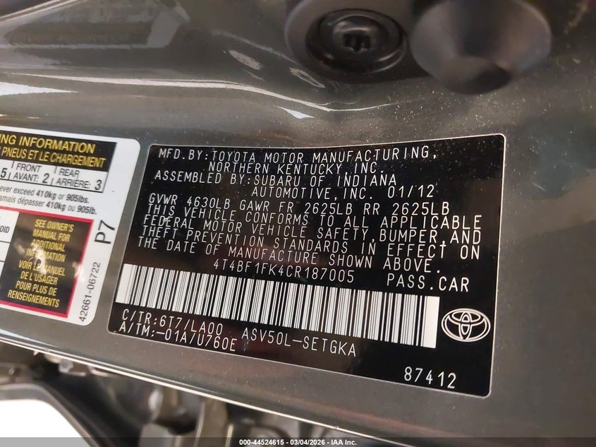 • 4T4BF1FK4CR187005