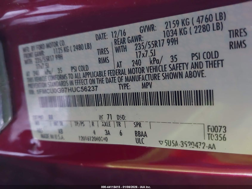 • 1FMCU0G97HUC56237