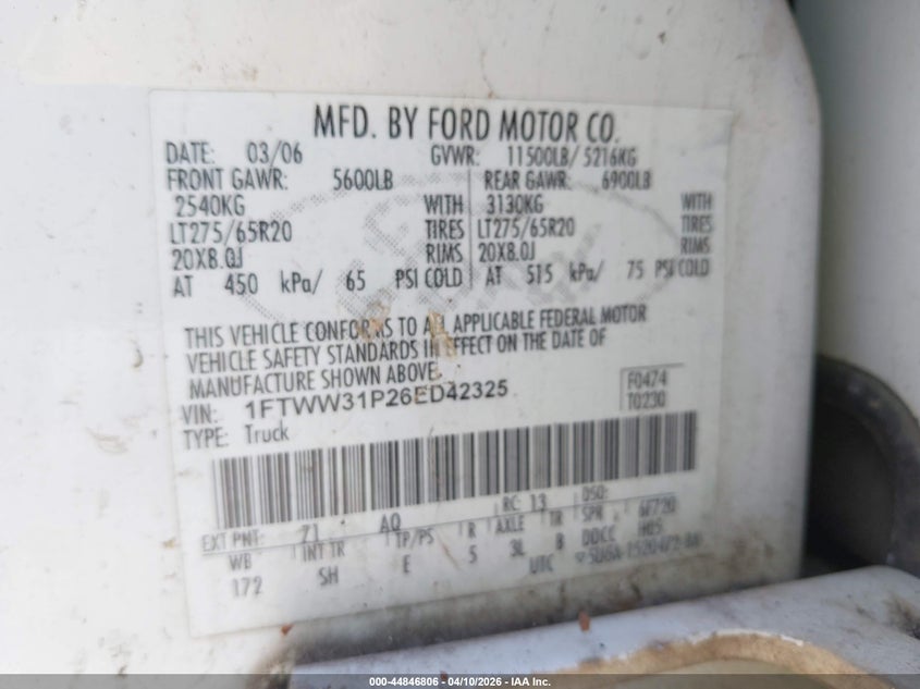 • 1FTWW31P26ED42325