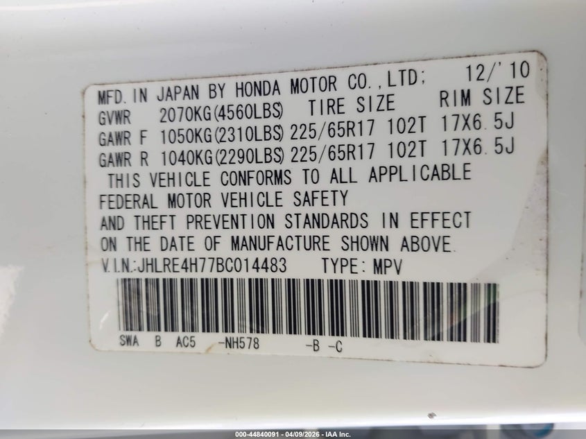 • JHLRE4H77BC014483