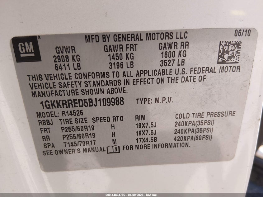• 1GKKRRED5BJ109988