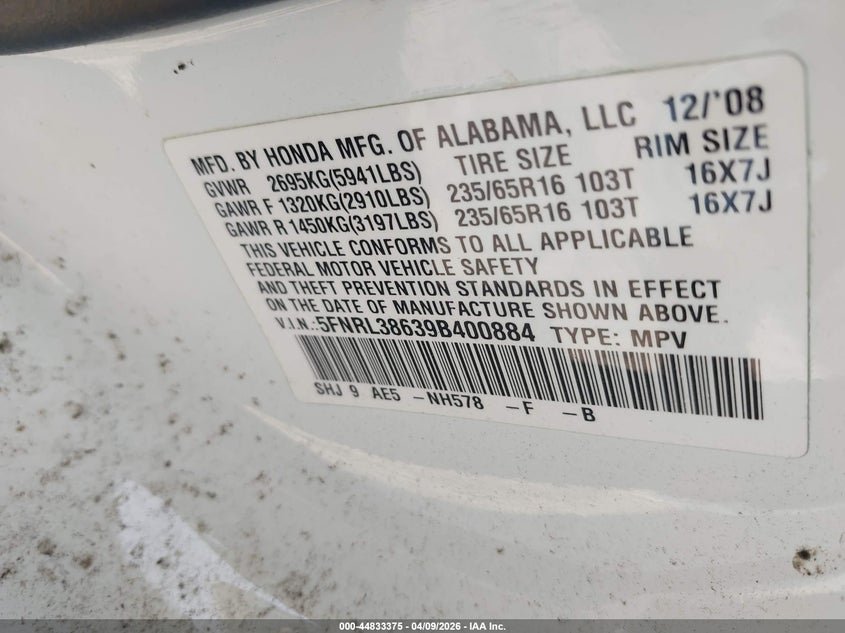 • 5FNRL38639B400884