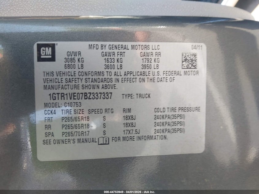 • 1GTR1VE07BZ337337