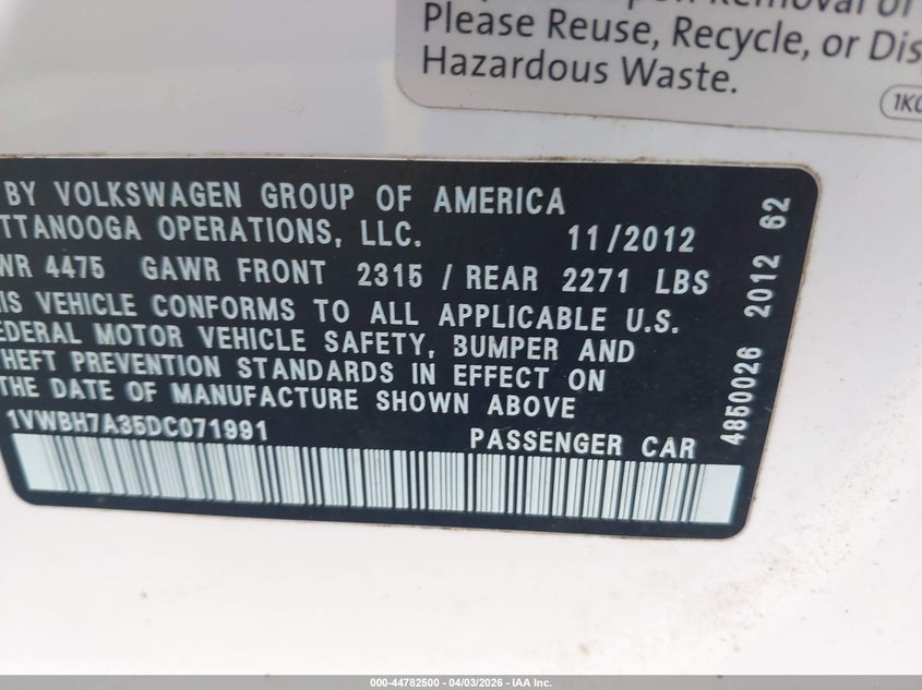 • 1VWBH7A35DC071991