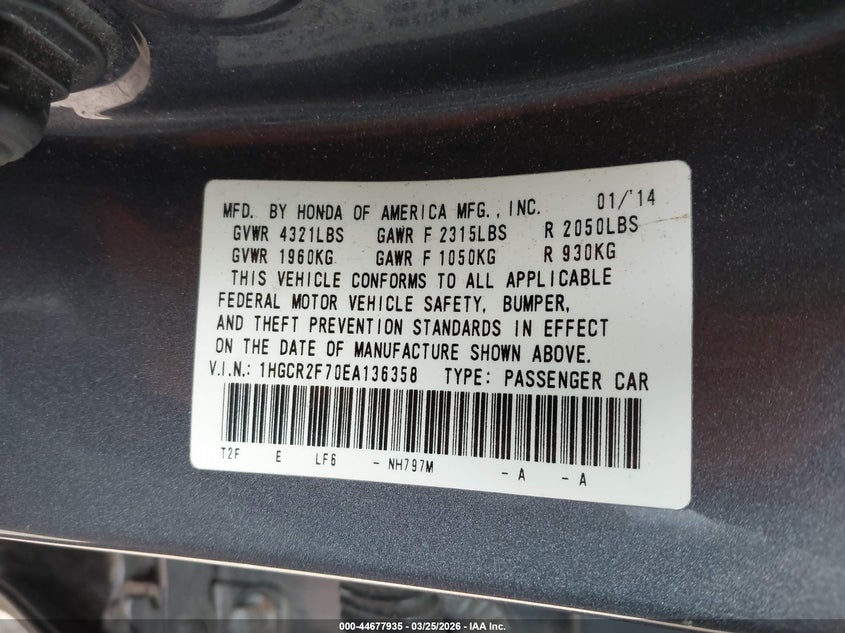 • 1HGCR2F70EA136358