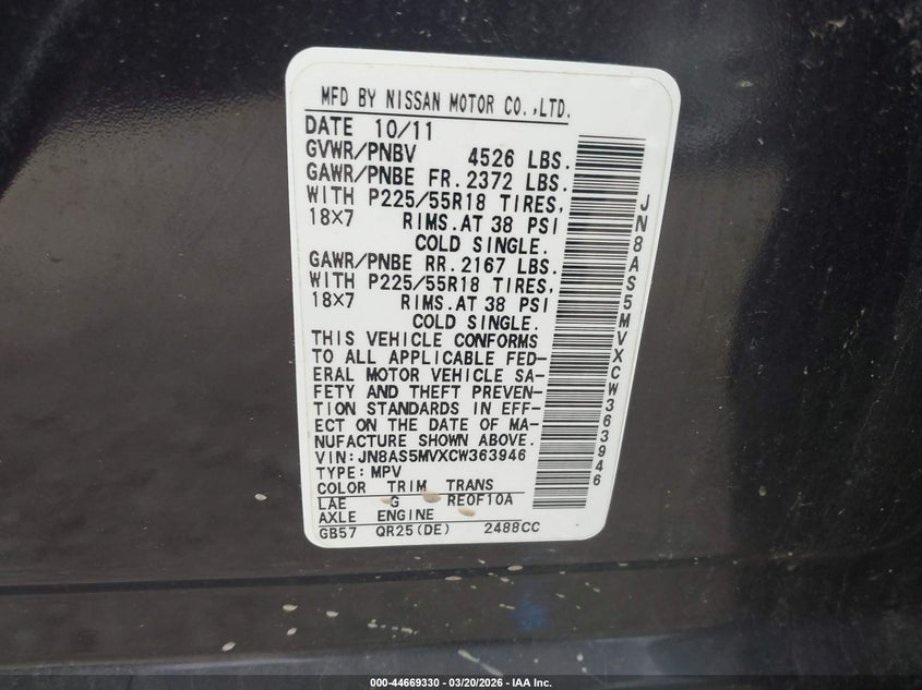 • JN8AS5MVXCW363946