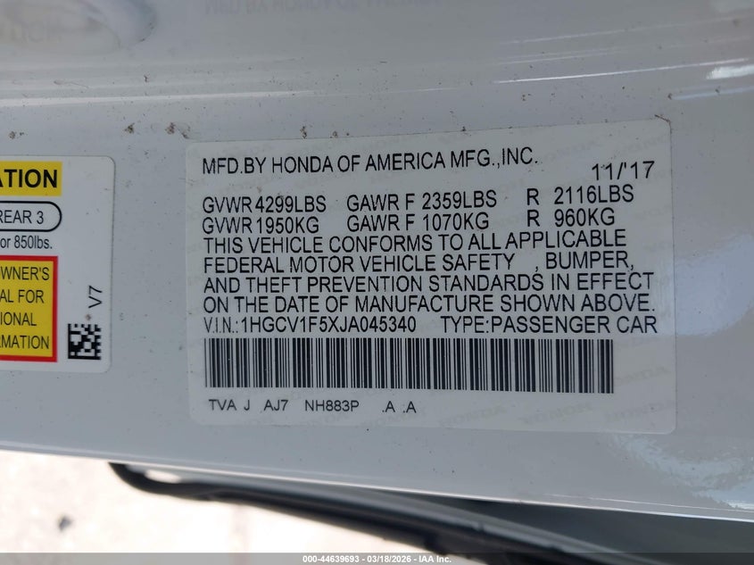 • 1HGCV1F5XJA045340