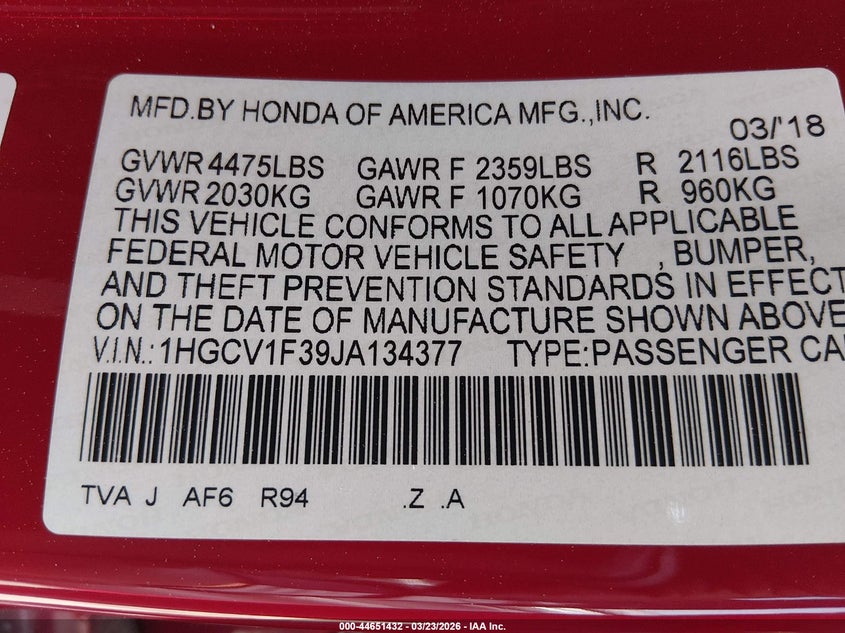 • 1HGCV1F39JA134377