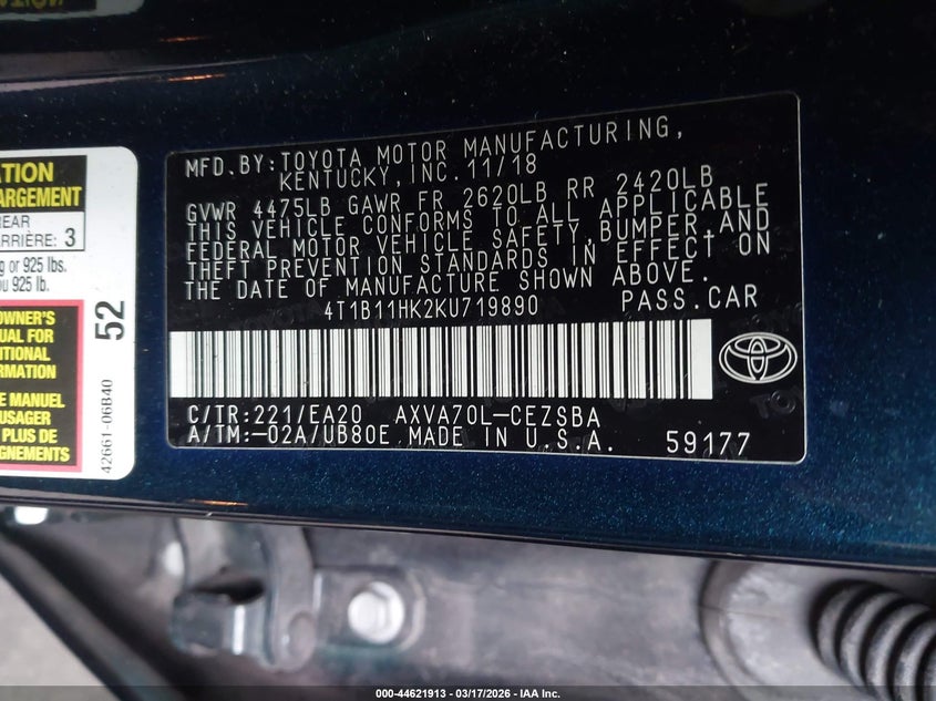 • 4T1B11HK2KU719890