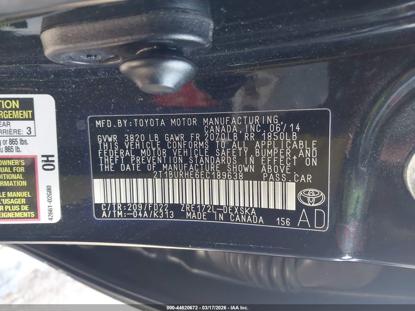 • 2T1BURHE6EC189638