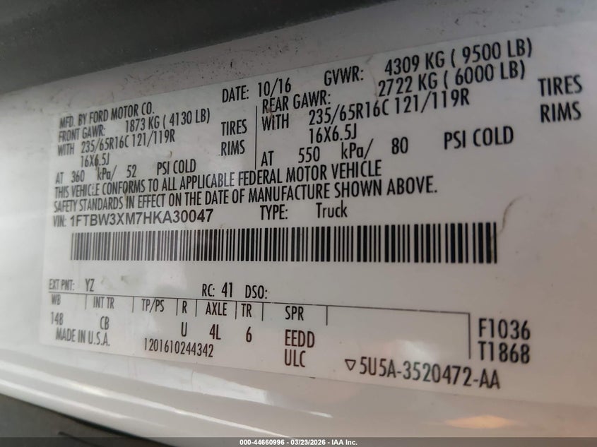 • 1FTBW3XM7HKA30047
