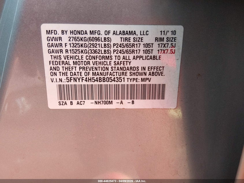 • 5FNYF4H54BB054351