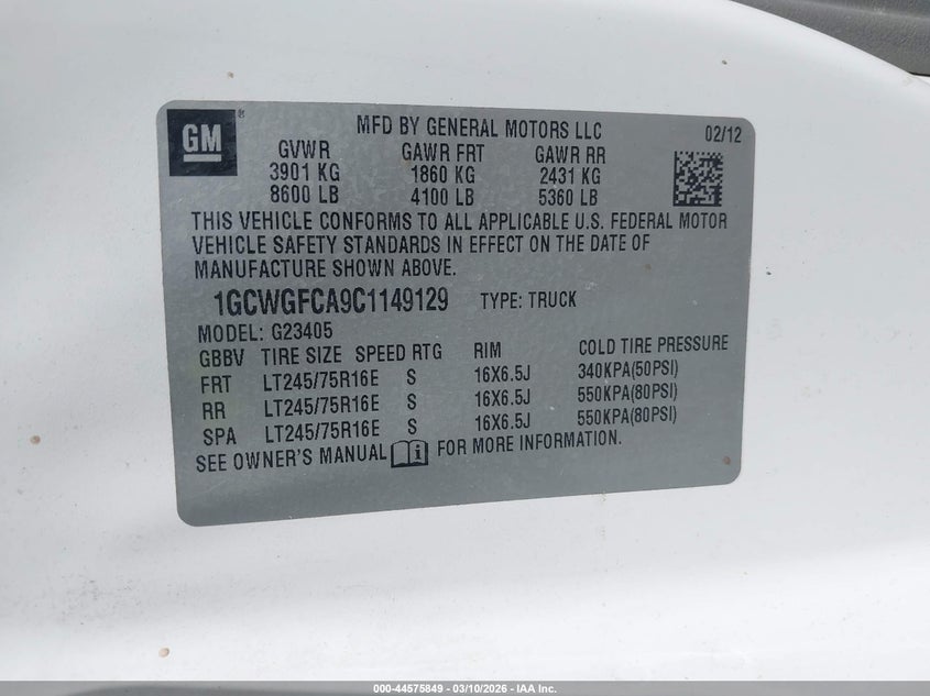 • 1GCWGFCA9C1149129