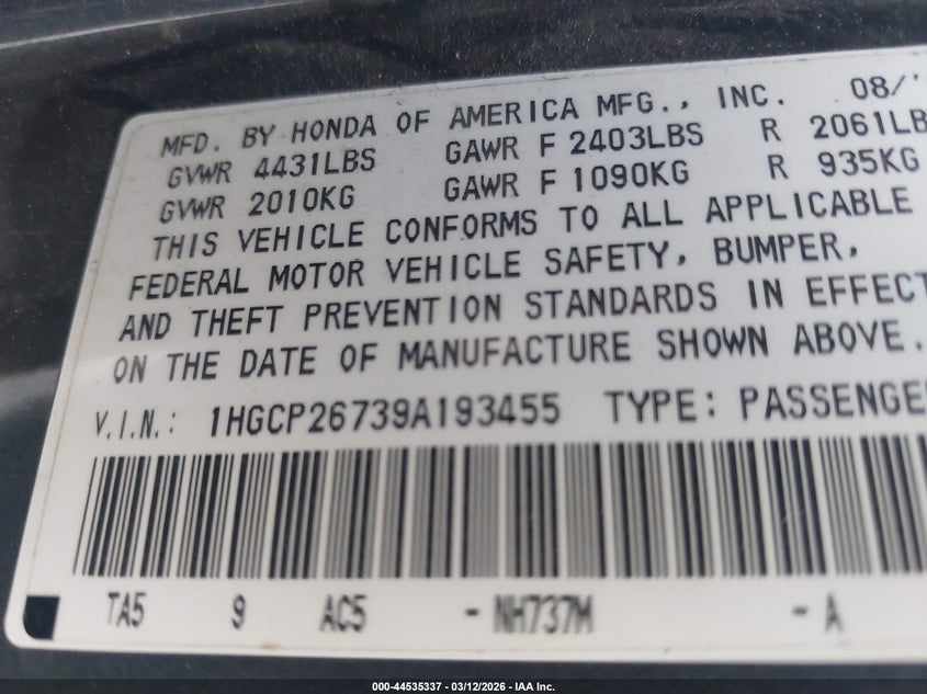 • 1HGCP26739A193455