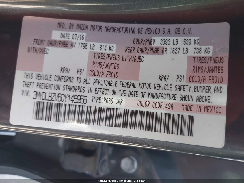 • 3MYDLBZV6GY146956