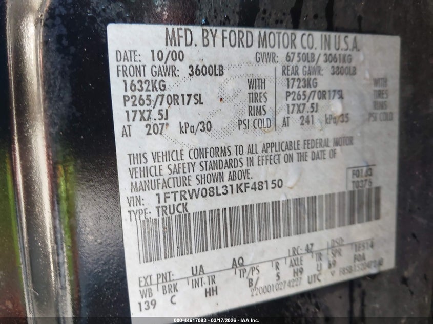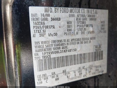• 1FTRW08L31KF48150