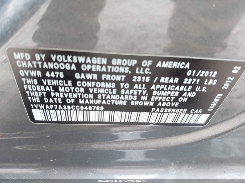 • 1VWAP7A39CC048789