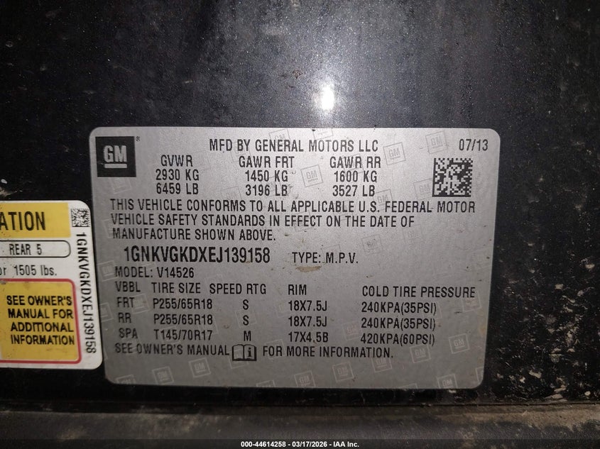 • 1GNKVGKDXEJ139158