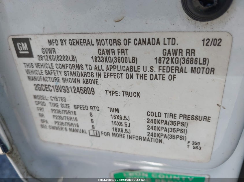 • 2GCEC19V931245809