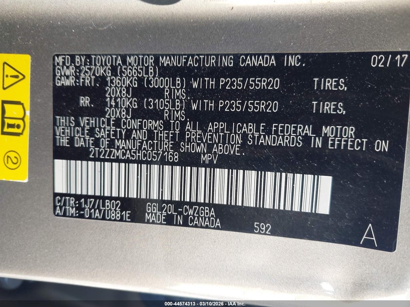 • 2T2ZZMCA5HC057168