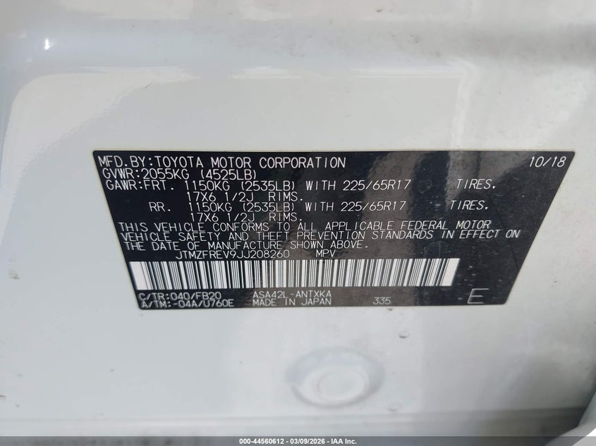 • JTMZFREV9JJ208260