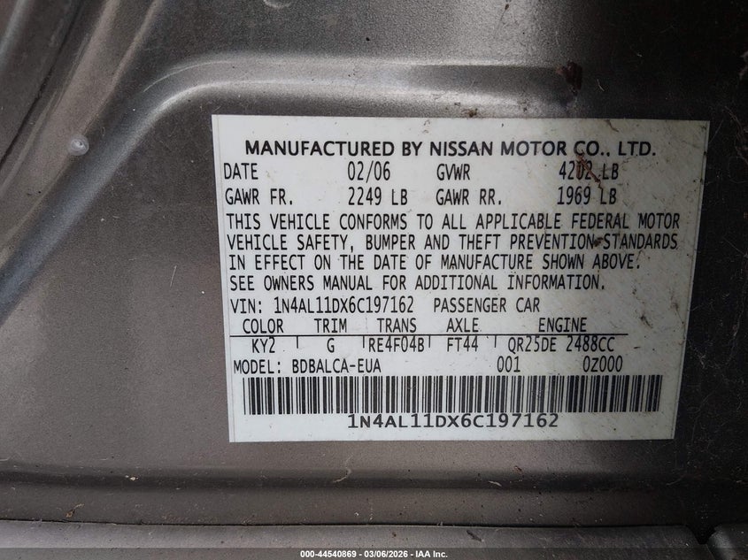2006 NISSAN ALTIMA 2.5 S for Sale in Grove City, OH