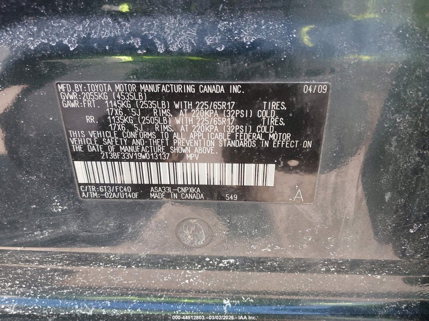 • 2T3BF33V19W013137