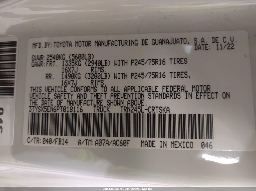 • 3TYSX5EN6PT018116