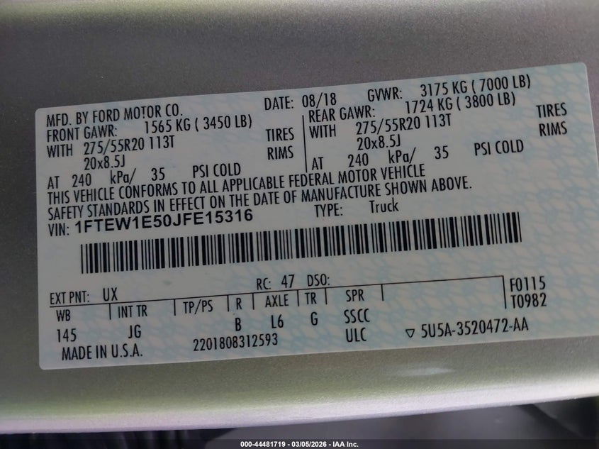 • 1FTEW1E50JFE15316