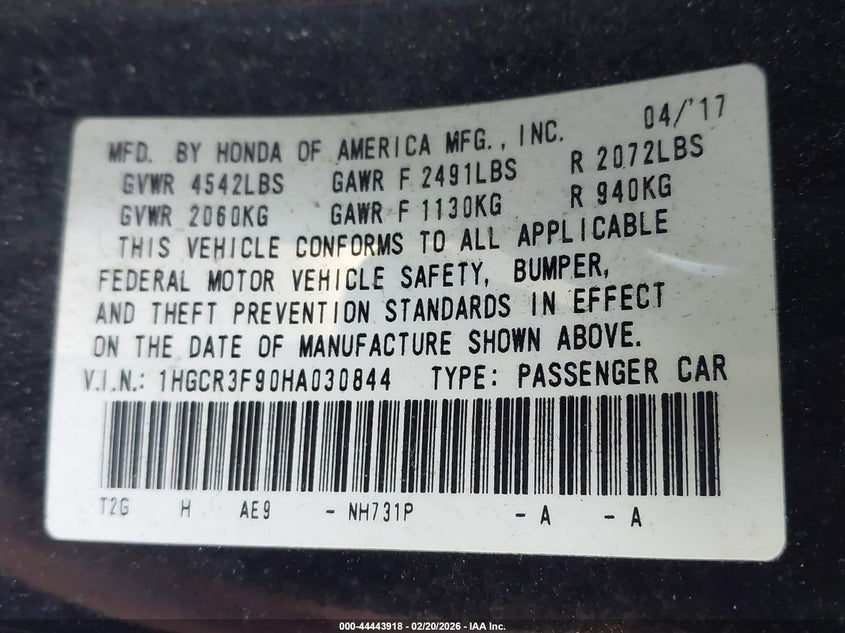 2017 HONDA ACCORD TOURING V6 for Sale in Grove City, OH