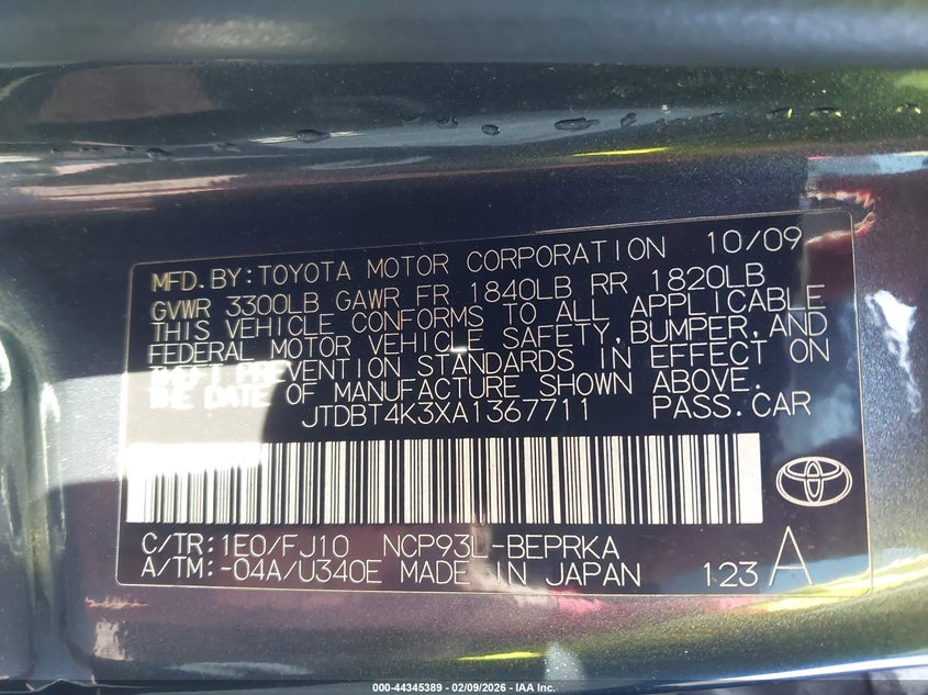 • JTDBT4K3XA1367711