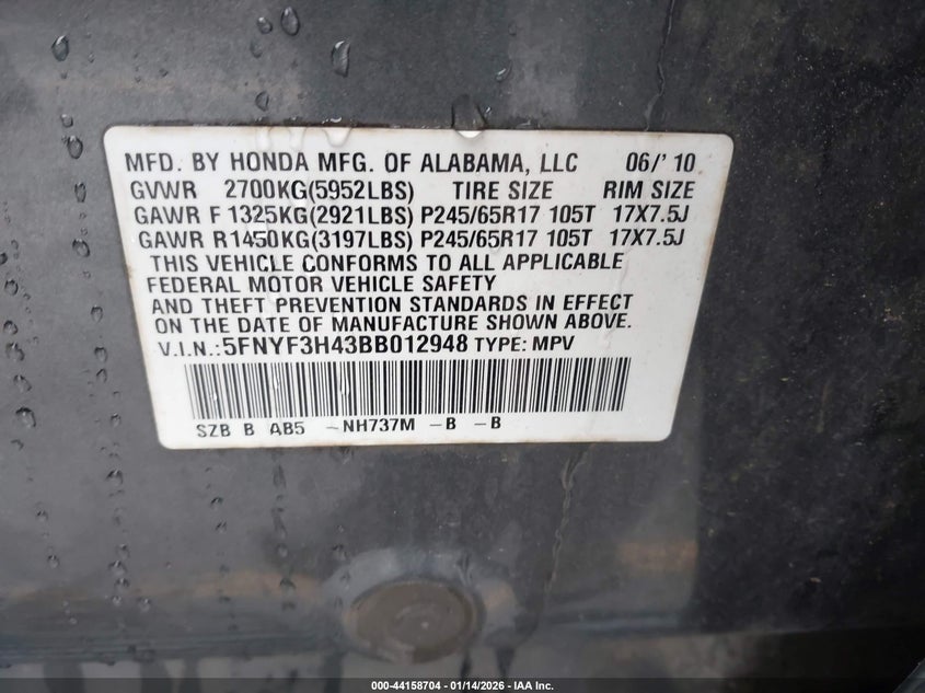 • 5FNYF3H43BB012948