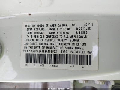 • 1HGCP2F69BA105022