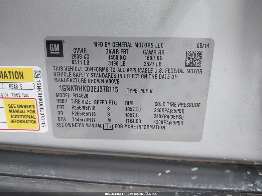 • 1GNKRHKD0EJ378115